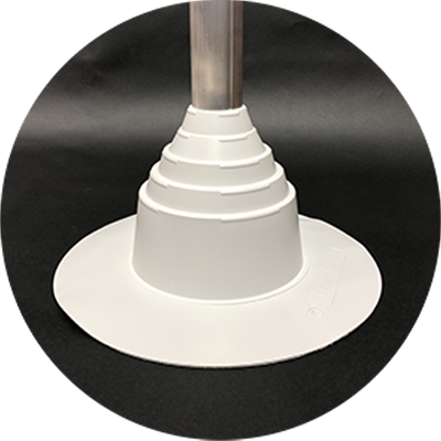 The rubber boot is a commonly used item in the roofing industry. When the roof will have lightweight concrete poured over the base plates, we recommend the usage of rubber boots as it acts an isolator between the concrete and the aluminum to help prevent oxidation.